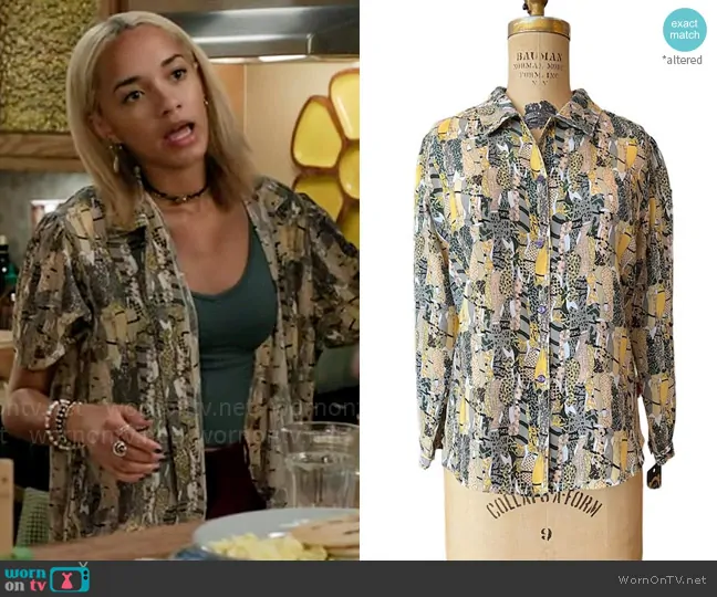 Ava (played by Amirah J) on High Potential on Hulu was spotted wearing this neck tie print shirt on High Potential on episode 'Dancers in the Dark' (1x02) in Sep 2024. Ava's Shirt is the Vintage Novelty Print Shirt by Sun Hung .