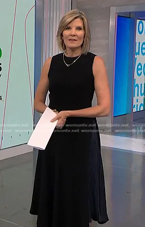 Kate Snow on NBC News Daily on NBC was spotted wearing this black pleated panel dress on NBC News Daily on Sep 25 2024's episode. Kate's Dress is the Mixed Panel Dress by Vince.