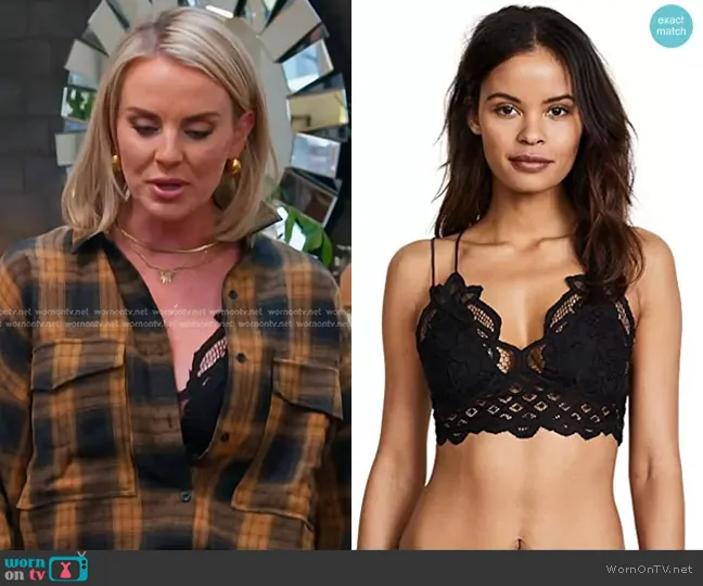 Whitney Rose on The Real Housewives of Salt Lake City on Bravo was spotted wearing this orange plaid shirt and black lace bralette on The Real Housewives of Salt Lake City on episode 'Walking a Tightrope' (5x02) in Sep 2024. Whitney's Bra is the Adella Bralette in Black by Free People . Whitney's Top is the Petaluma Cotton Blend Plaid Button Down Top by Vici.