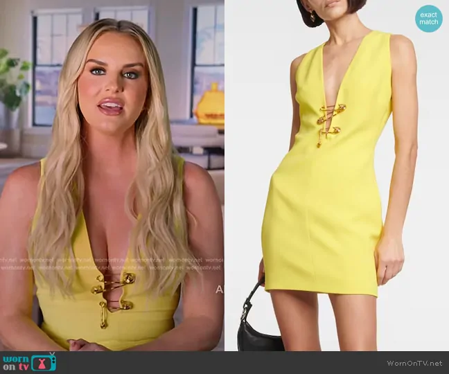 Whitney Rose on The Real Housewives of Salt Lake City on Bravo was spotted wearing this yellow confessional dress on The Real Housewives of Salt Lake City on episode 'Walking a Tightrope' (5x02) in Sep 2024. Whitney's Dress is the Safety Pin silk minidress by Versace.