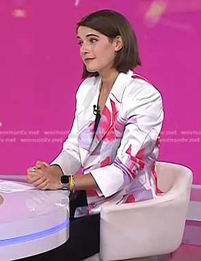 on Today on NBC was spotted wearing this white floral blazer on Today on Sep 26 2024's episode. 's Jacket is the Tulip Print Blazer by Paul Smith.