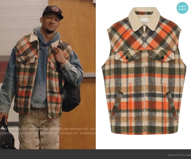 Damon (played by Peyton Alex Smith) on All American Homecoming on CWTV was spotted wearing this plaid vest and pants on All American Homecoming on episode 'Survivor' (3x13) in Oct 2024. Damon's Vest is the Kiraneo casual vest by Marant . Damon's Pants is the V624 Snap Off Baggy Pants by MNML.