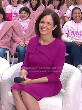 on Today on NBC was spotted wearing this magenta Sheath dress on Today on Oct 01 2024's episode. 's Dress is the Sculpt Stretch Crepe in Magenta Pink by The Fold.