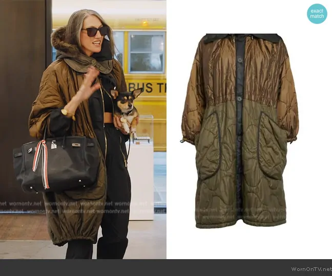 Jenna Lyons on The Real Housewives of New York City on Bravo was spotted wearing this green two-tone coat on The Real Housewives of New York City on episode 'Apple of My Lie' (15x01) in Oct 2024. Jenna's Coat is the Parker Coat by Marfa Stance.
