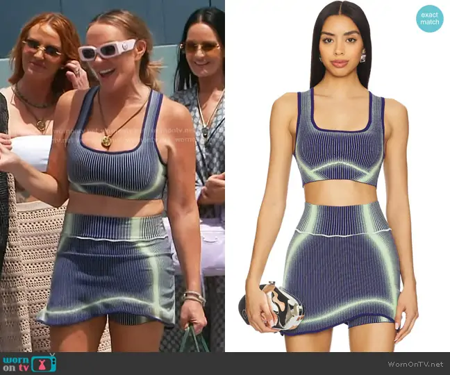 Heather Gay on The Real Housewives of Salt Lake City on Bravo was spotted wearing this grey and brown printed track jacket and pants on The Real Housewives of Salt Lake City on episode 'Basketball, Bobbleheads and the Brow Girl' (5x03) in Oct 2024. Heather's Jacket is the G Rhombus Zip-up Jacket by Gucci . Heather's Pants is the GG Jacquard Wide-leg Trousers by Gucci.
