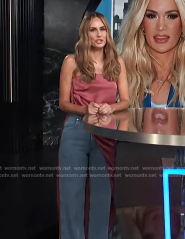 Keltie Knight on E! News on E! was spotted wearing this pink strapless asymmetric top on E! News on Oct 03 2024's episode. Keltie's Top is the Lido strapless asymmetric satin top by Rick Owens.
