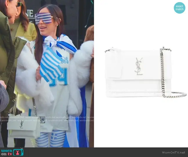 Angie Katsanevas on The Real Housewives of Salt Lake City on Bravo was spotted wearing this white bag with silver chain strap on The Real Housewives of Salt Lake City on episode 'Basketball, Bobbleheads and the Brow Girl' (5x03) in Oct 2024. Angie K's Bag is the Leather Sunset Bag in White by Saint Laurent.