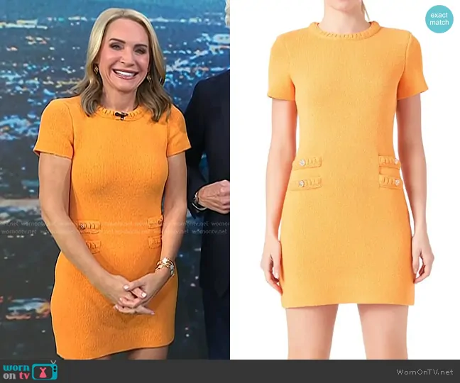on Today on NBC was spotted wearing this orange tweed mini dress on Today on Oct 08 2024's episode. 's Dress is the Knit Minidress in Orange by Endless Rose.