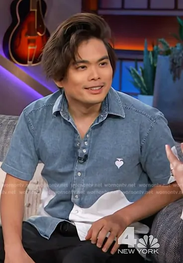 on The Kelly Clarkson Show on NBC was spotted wearing this two-tone shirt on The Kelly Clarkson Show on Oct 08 2024's episode. 's Shirt is the Two Shirt by KKoncept.