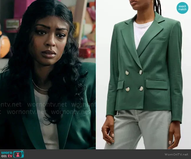 Daphne (played by Javicia Leslie) on High Potential on Hulu was spotted wearing this green blazer on High Potential on episode 'Dirty Rotten Scoundrel' (1x03) in Oct 2024. Daphne's Jacket is the Kona Dickey Jacket by Veronica Beard.