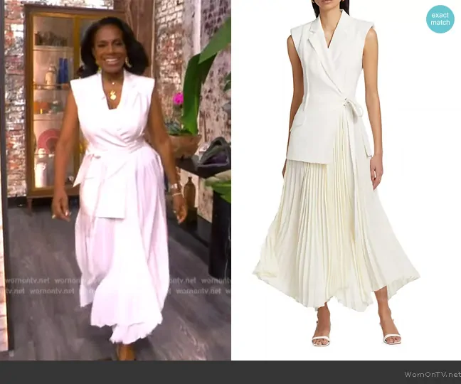 on The View on ABC was spotted wearing this white pleated blazer dress on The View on Oct 09 2024's episode. 's Dress is the Helena Combo Blazer Dress by Simkhai.