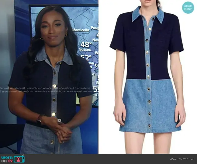 Sandro Brooke Mixed Media Denim Mini Shirtdress worn by Brittany Bell on Good Morning America