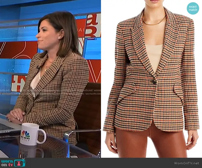 on NBC News Daily on NBC was spotted wearing this beige houndstooth blazer on NBC News Daily on Oct 14 2024's episode. 's Jacket is the Chamberlain Blazer in Brown Multi by L'Agence.