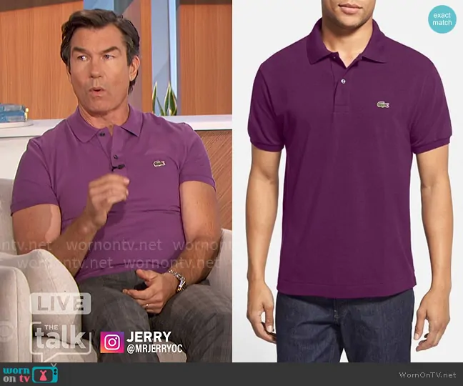 Jerry O'Connell on The Talk on CBS was spotted wearing this purple polo shirt on The Talk on Oct 17 2024's episode. Jerry's Shirt is the Piqué Polo in Dark Purple by Lacoste.