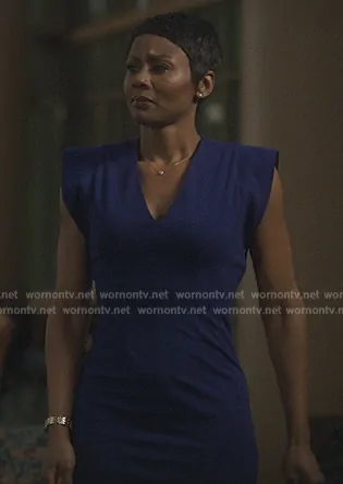 Jax Stewart (played by Emayatzy Corinealdi) on Reasonable Doubt on Hulu was spotted wearing this blue v-neck dress on Reasonable Doubt on episode 'Encore' (2x10) in Oct 2024. Jax's Dress is the V Neck Sheath Dress by Calvin Klein.