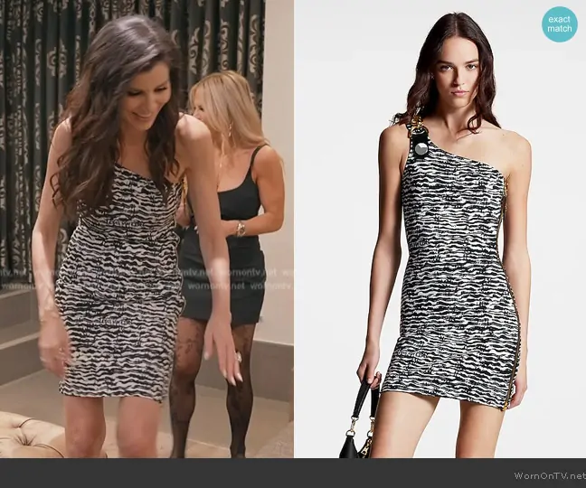 Heather Dubrow on The Real Housewives of Orange County on Bravo was spotted wearing this one shoulder printed mini dress on The Real Housewives of Orange County on episode 'Double Decker Drama' (18x15) in Oct 2024. Heather's Dress is the Ink Tiger One Shoulder Dress by Louis Vuitton.