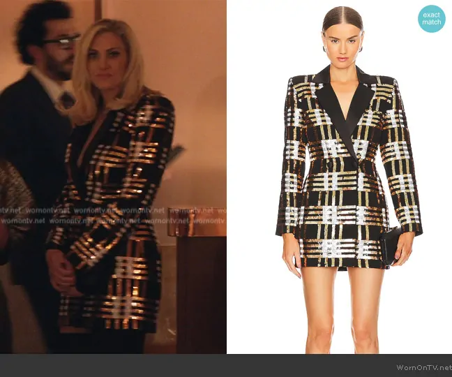 Gina Kirschenheiter on The Real Housewives of Orange County on Bravo was spotted wearing this plaid metallic blazer dress on The Real Housewives of Orange County on episode 'Double Decker Drama' (18x15) in Oct 2024. Gina's Dress is the Calypso Blazer Dress by Lovers and Friends.