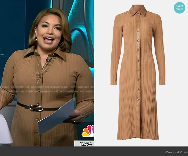 Toccin x RTR Camel Variegated Rib Knit Leather Combo Dress worn by Gilma Avalos on NBC News Daily