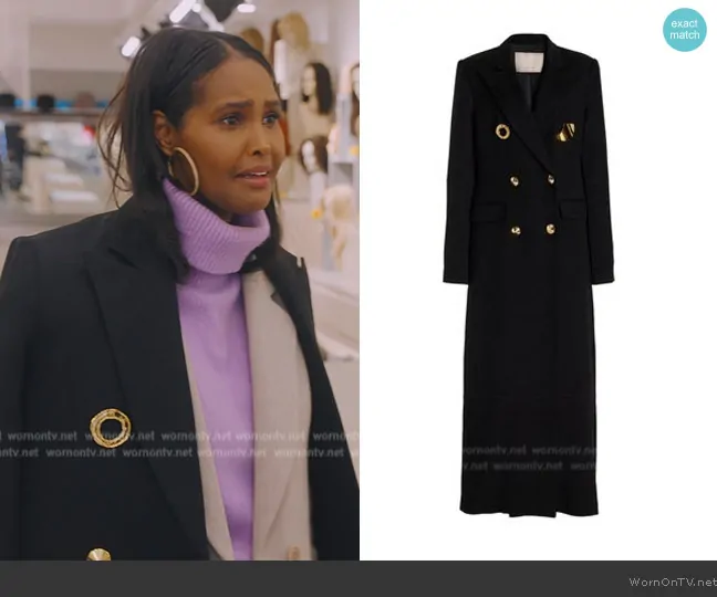Ubah Hassan on The Real Housewives of New York City on Bravo was spotted wearing this black coat on The Real Housewives of New York City on episode 'You Can Run but You Can't Ride' (15x02) in Oct 2024. Ubah's Coat is the Michael Button-Detailed Wool-Blend Coat by Harbison.