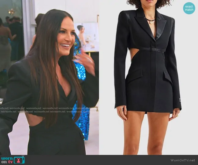 Lisa Barlow on The Real Housewives of Salt Lake City on Bravo was spotted wearing this black cutout blazer dress on The Real Housewives of Salt Lake City on episode 'Mafia Wives and Bad Vibes' (5x06) in Oct 2024. Lisa's Dress is the Grain de Poudre Wool Cutout Blazer Dress by Versace . Lisa's Jacket is the Fox & Rex Rabbit Jacket by Maverick.