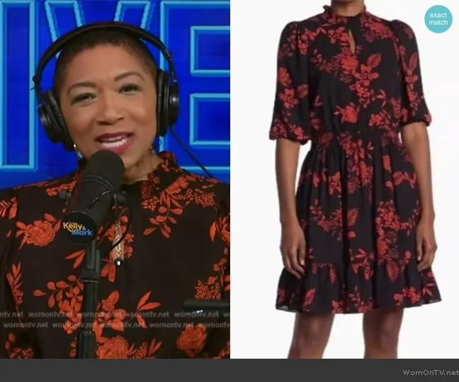 Deja Vu on Live with Kelly and Mark on Disney ABC Home Entertainment was spotted wearing this black floral print dress on Live with Kelly and Mark on Oct 25 2024's episode. Deja Vu's Dress is the Floral Flounce Hem Puff Sleeve Dress by Nanette.