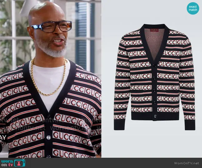 Poppa (played by Damon Wayans) on Poppas House on CBS was spotted wearing this Gucci stripe cardigan on Poppas House on episode 'Podcast' (1x03) in Nov 2024. Poppa's Sweater is the Logo cotton jacquard cardigan by Gucci . Poppa's Shoes is the Air Max 1 Sneakers in Obsidian/White/Light Smoke Grey/Metallic Gold by Nike.