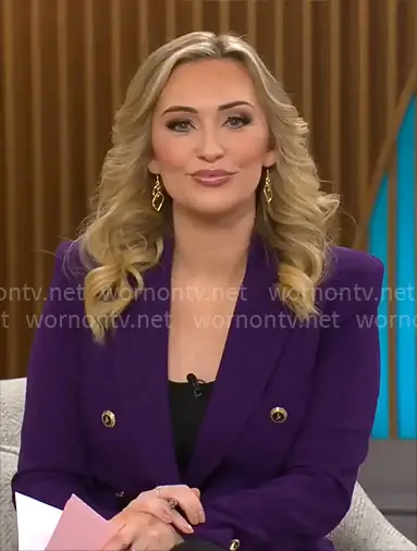 Kelly O'Grady on CBS Mornings on CBS was spotted wearing this purple blazer on CBS Mornings on Dec 31 2025's episode. Kelly's Jacket is the Tailored Double Breasted Blazer by Zara .