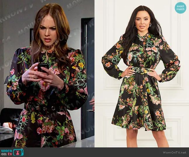 Stephanie Johnson (played by Abigail Klein) on Days of our Lives on Peacock was spotted wearing this black belted floral dress on Days of our Lives on Oct 31 2024's episode. Stephanie's Dress is the Blair Floral Dress by Guess.