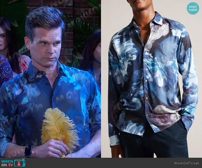 Leo Stark (played by Greg Rikaart) on Days of our Lives on Peacock was spotted wearing this blue floral shirt on Days of our Lives on Oct 31 2024's episode. Leo's Shirt is the Bitonto Bold Floral Regular Fit Shirt by Ted Baker.