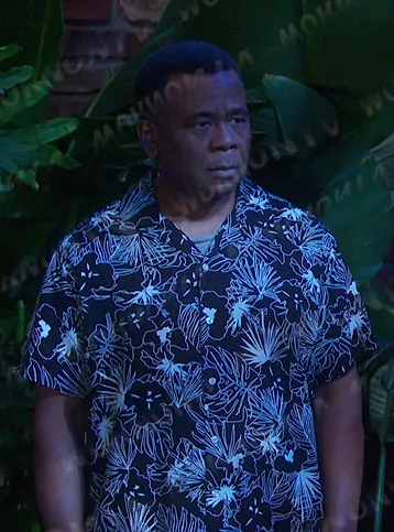 (played by ) on Days of our Lives on Peacock was spotted wearing this black floral short sleeve shirt on Days of our Lives on Oct 31 2024's episode. 's Shirt is the Short Sleeve Collared Button-Down Shirt in Black by Original Use.