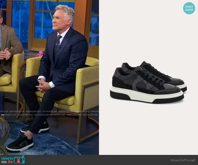 Ferragamo Low Top Sneaker with Gancini Outline worn by Sam Champion on Good Morning America