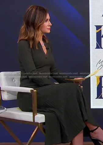 Rebecca Jarvis on Good Morning America on ABC was spotted wearing this green ribbed midi dress on Good Morning America on Jan 07 2026's episode. Rebecca's Dress is the Genna Ribbed Fit & Flare Dress in Moss by Simkhai.