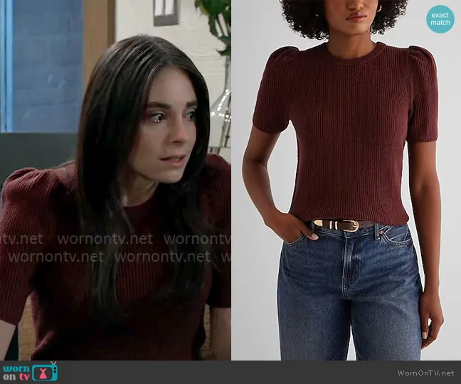 Express Ribbed Crew Neck Puff Sleeve Sweater worn by Molly Lansing-Davis (Kristen Vaganos) on General Hospital