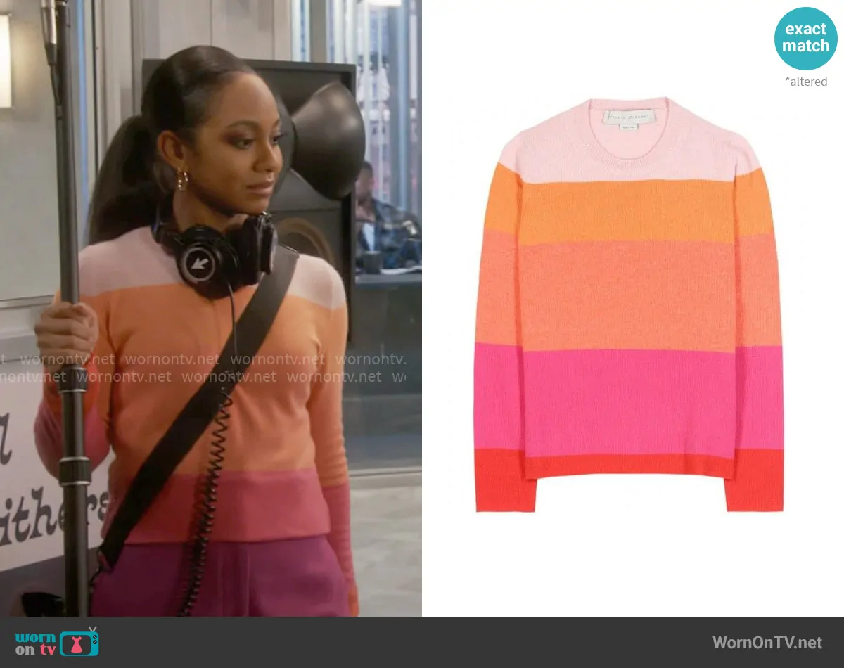 Nina (played by Tetona Jackson) on Poppas House on CBS was spotted wearing this colorblock sweater on Poppas House on episode 'Podcast' (1x03) in Nov 2024. Nina's Sweater is the Color Block Cashmere Sweater by Stella McCartney .