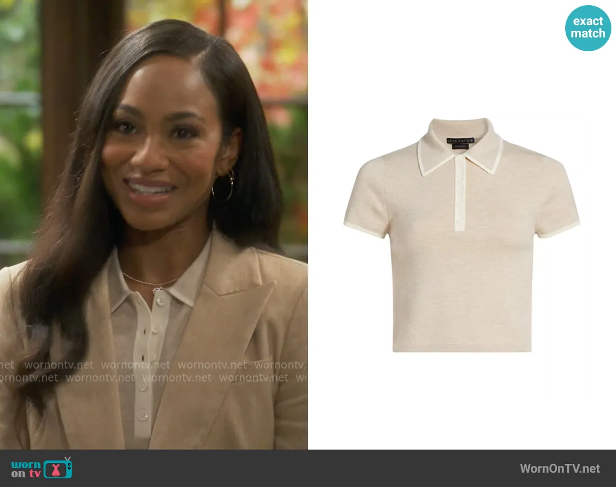 Top: Meda Crop Polo Shirt in Oatmeal by Alice + Olivia