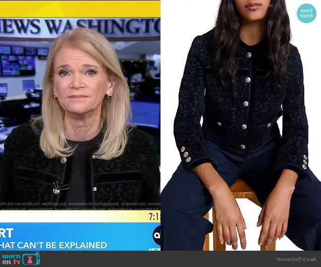 Martha Raddatz on Good Morning America on ABC was spotted wearing this velvet jacket on Good Morning America on Dec 11 2025's episode. Martha's Sweater is the Velvet Knit Cardigan by Maje.