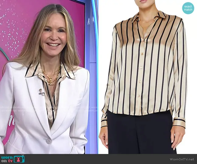 L'Agence Tyler Striped Silk Blouse in Almond/Black Stripe worn by Elle Macpherson on Today