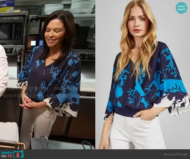 Meg Oliver on CBS Mornings on CBS was spotted wearing this blue floral blouse on CBS Mornings on Nov 17 2024's episode. Meg's Top is the Margiel Top by Ted Baker .
