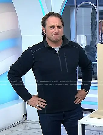 on Today on NBC was spotted wearing this black zip chest pocket sweater on Today on Nov 18 2024's episode. 's Sweater is the Interceptr Quarter-Zip Fleece Sweater by Kuhl.