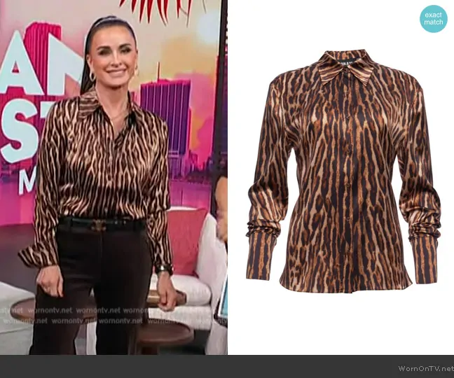 on Access Hollywood on NBC was spotted wearing this Kyle Richards’ leopard print satin shirt on Access Hollywood on Nov 18 2024's episode. 's Top is the Olsen Silk Top by Retrofete.