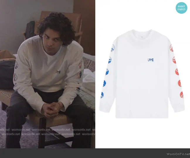 Miguel Diaz (played by Xolo Mariduena) on Cobra Kai on Netflix was spotted wearing this white skull print long sleeve tee on Cobra Kai on episode 'Dog in the Fight' (6x07) in Nov 2024. Miguel's Top is the Gradient Skull Longsleeve by Vans.
