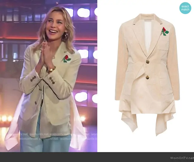 on The Kelly Clarkson Show on NBC was spotted wearing this velvet rose embroidered blazer on The Kelly Clarkson Show on Nov 22 2024's episode. 's Blazer is the Single-breasted blazer by Undercover.