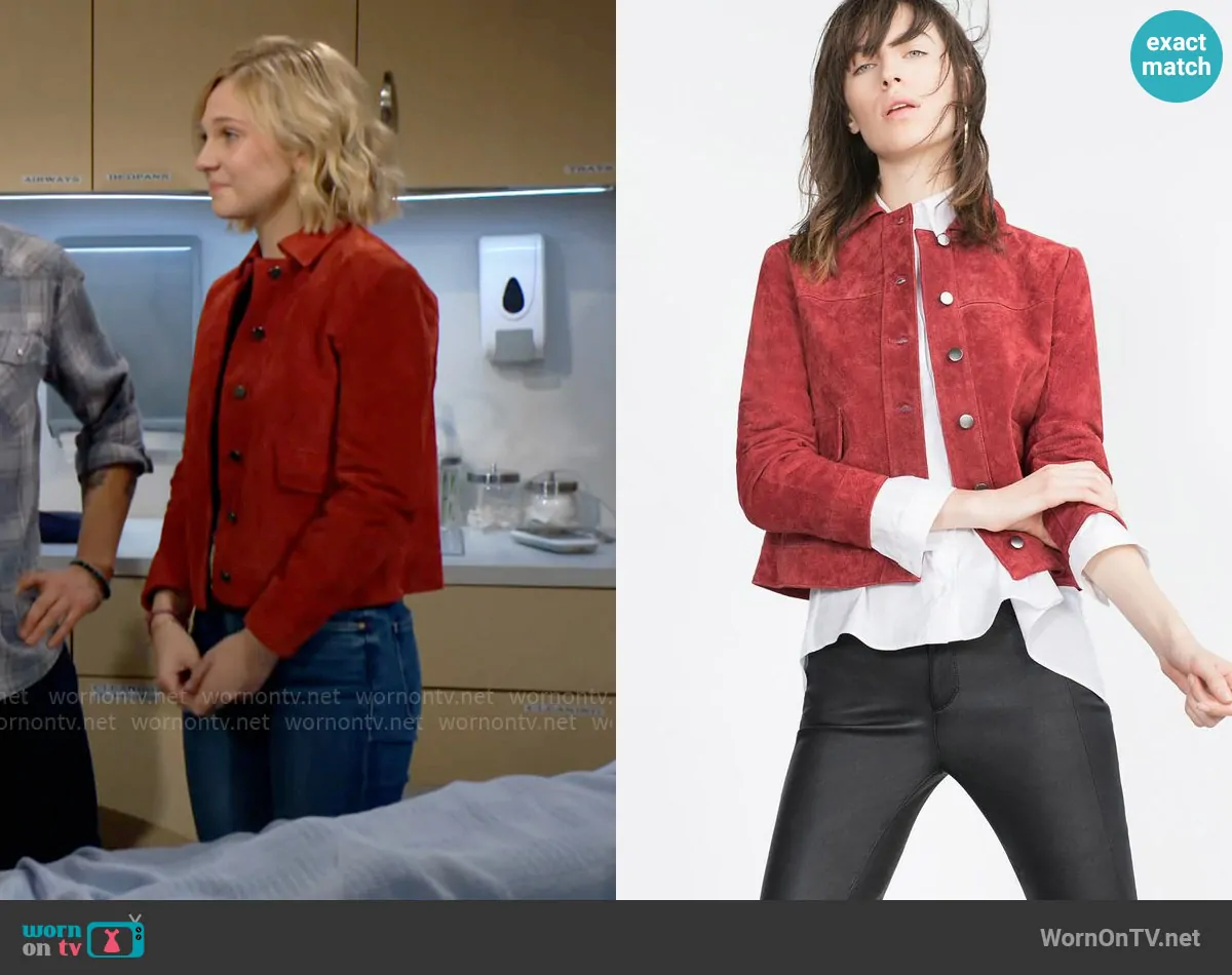 Summer Newman (played by Allison Lanier) on The Young and the Restless on CBS was spotted wearing this red suede jacket on The Young and the Restless on Nov 21 2024's episode. Summer's Jacket is the Suede Jacket by Zara.