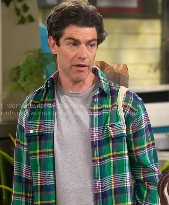Dave Johnson (played by Max Greenfield) on The Neighborhood on CBS was spotted wearing this green plaid shirt on The Neighborhood on episode 'Welcome to the Zhuzh' (8x09) in Feb 2026. Dave's Shirt is the Classic Fit Plaid Flannel Workshirt by Polo Ralph Lauren.