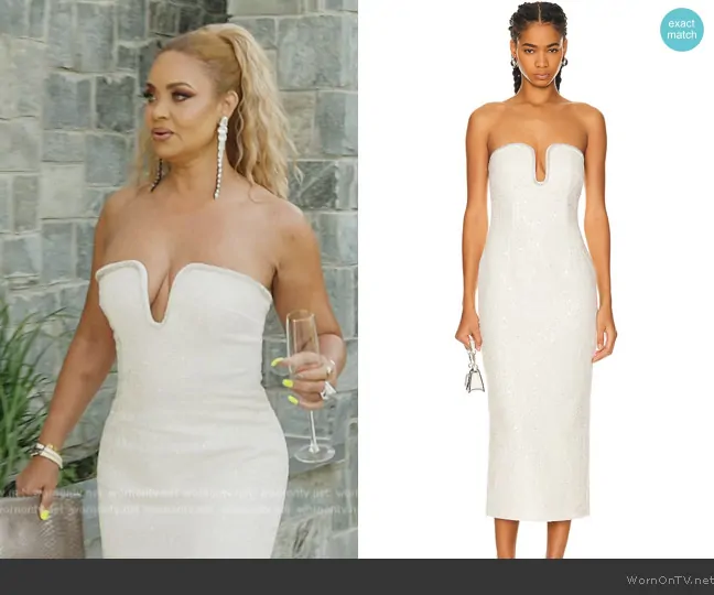 Gizelle Bryant on The Real Housewives of Potomac on Bravo was spotted wearing this white off shoulder dress on The Real Housewives of Potomac on episode 'Healing, Thriving and Surviving' (9x08) in Nov 2024. Gizelle's Dress is the Sequin Boucle Midi Dress by Self Portrait.