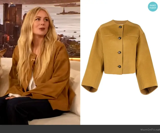 on The Drew Barrymore Show on CBS was spotted wearing this mustard jacket on The Drew Barrymore Show on Nov 23 2024's episode. 's Jacket is the Button-up tailored jacket by Loulou Studio.