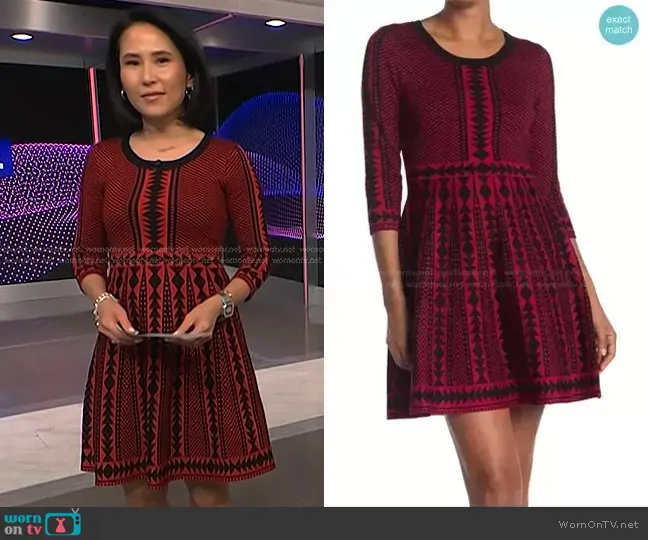 Nina Leonard Geometric Print Sweater Dress worn by Vicky Nguyen on NBC News Daily