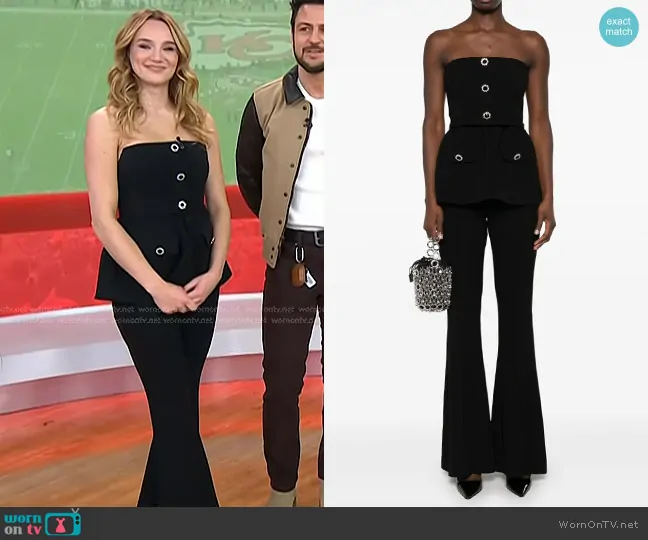 on Today on NBC was spotted wearing this black strapless jumpsuit on Today on Nov 27 2024's episode. 's Jumpsuit is the Crepe Jumpsuit by Self Portrait.