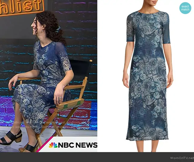 on Today on NBC was spotted wearing this blue floral print midi dress on Today on Nov 29 2024's episode. 's Dress is the Floral Mesh Boatneck Midi-Dress by Johnny Was.