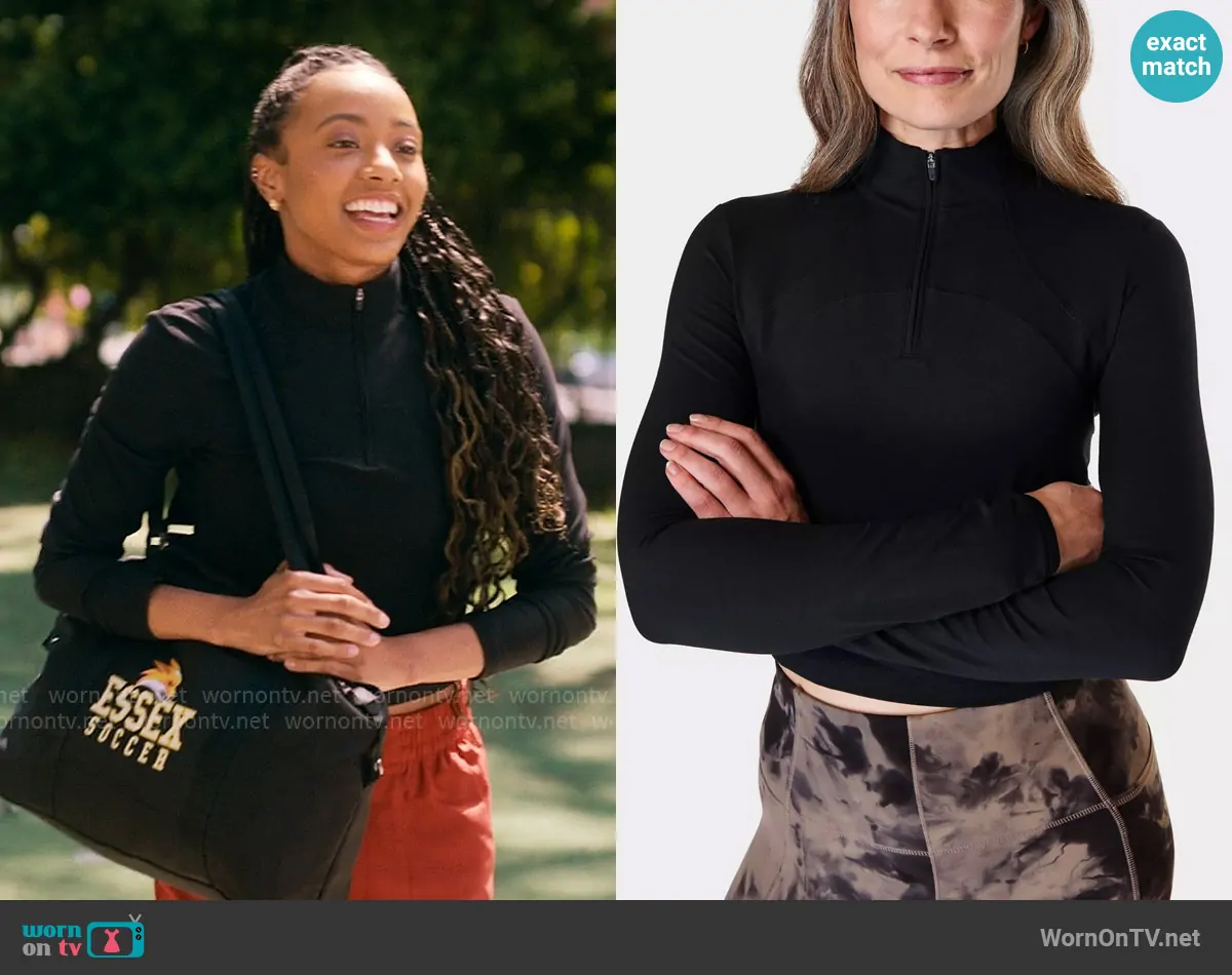 Whitney Chase (played by Alyah Chanelle Scott) on The Sex Lives of College Girls on HBO was spotted wearing this black half-zip top on The Sex Lives of College Girls on episode 'Lila by Lila' (3x02) in Nov 2024. Whitney's Top is the Super Soft Half Zip by Sweaty Betty.
